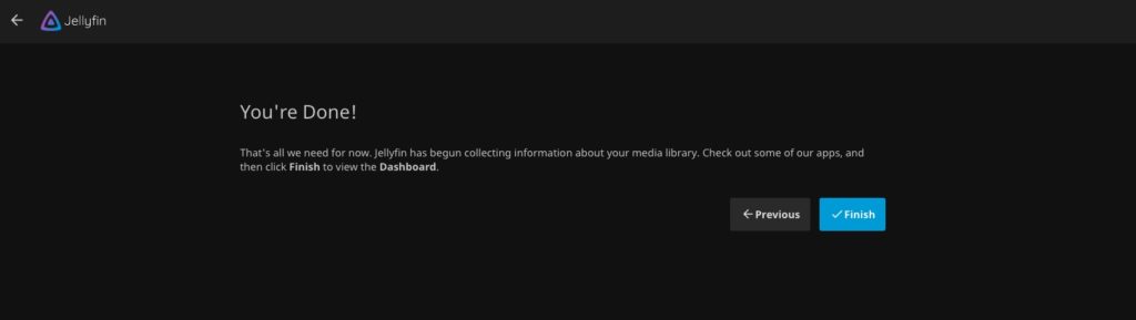 Once logged, in you can navigate to the dashboard and customize your Jellyfin installation.