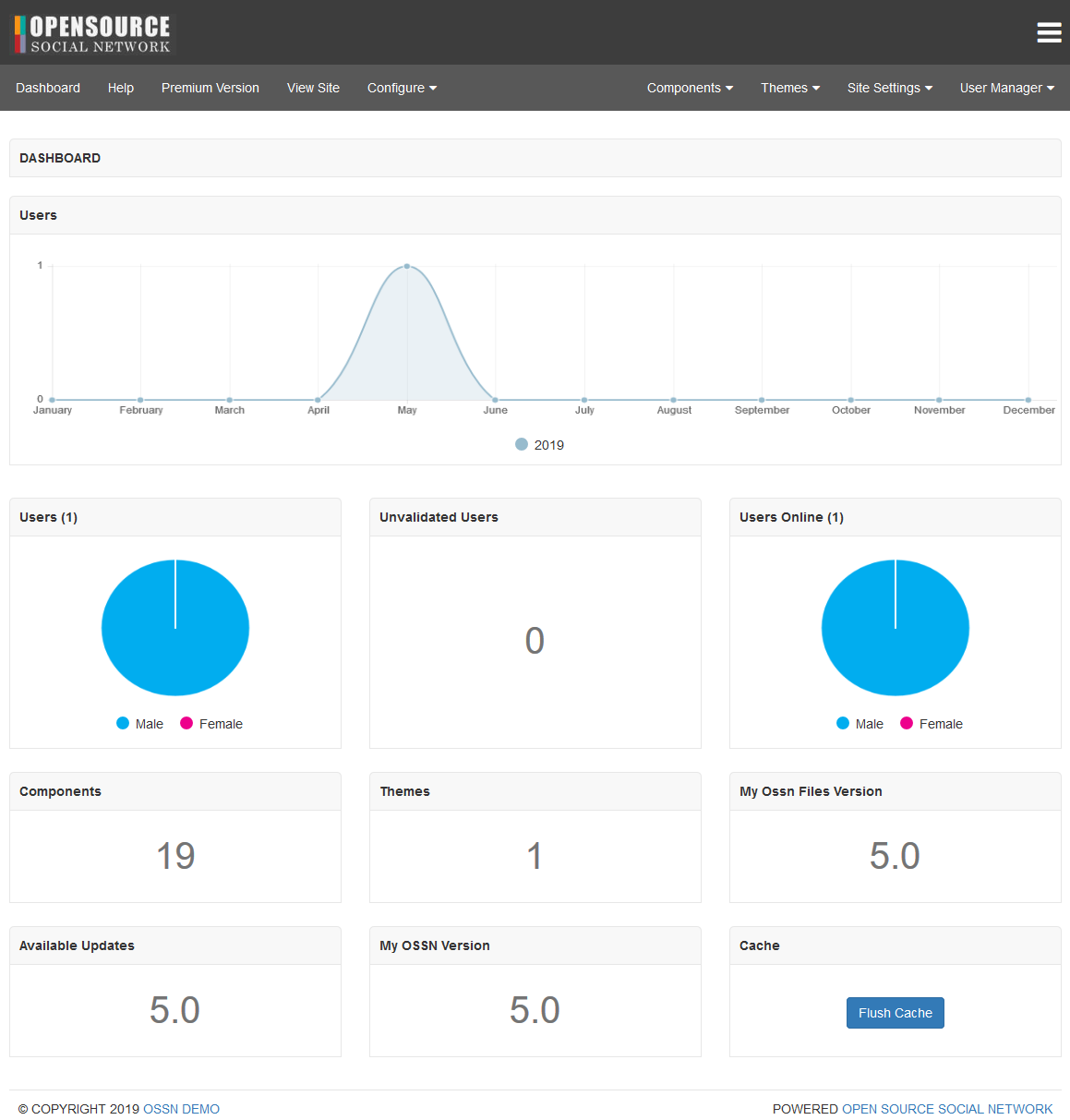The administrator dashboard will look as shown on the following image.