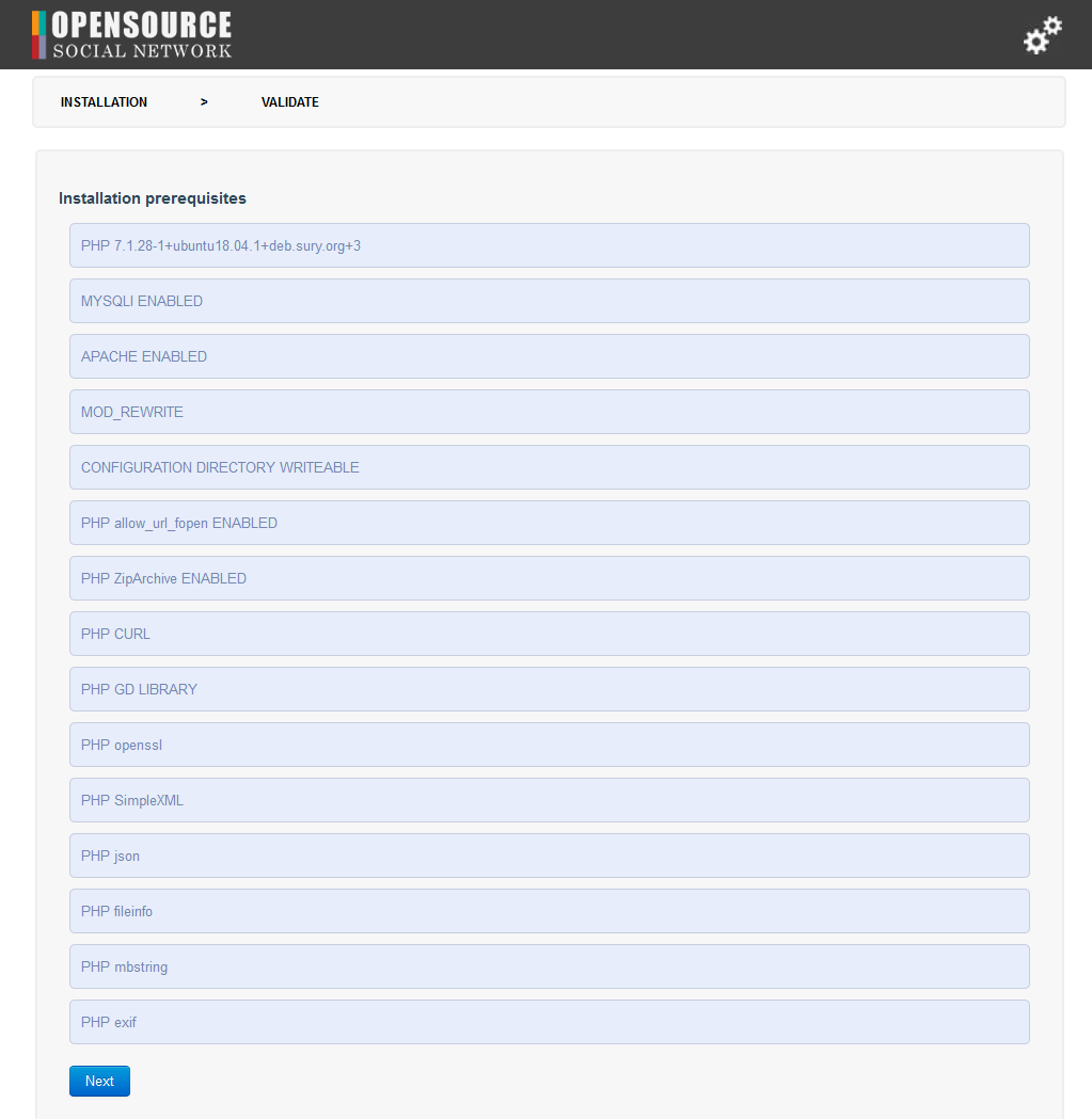 At the time of writing this article, the latest stable version of Open Source Social Network is 5.0, and it requires:
