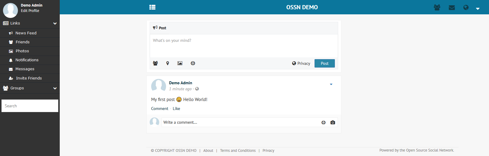In this article, we showed you how to install Apache2, PHP 7.1, MariaDB Database Server, created an OSSN database and of course installed Open Source Social Network. Now you can start creating your own private community and connect with your friends with this wonderful social media platform.